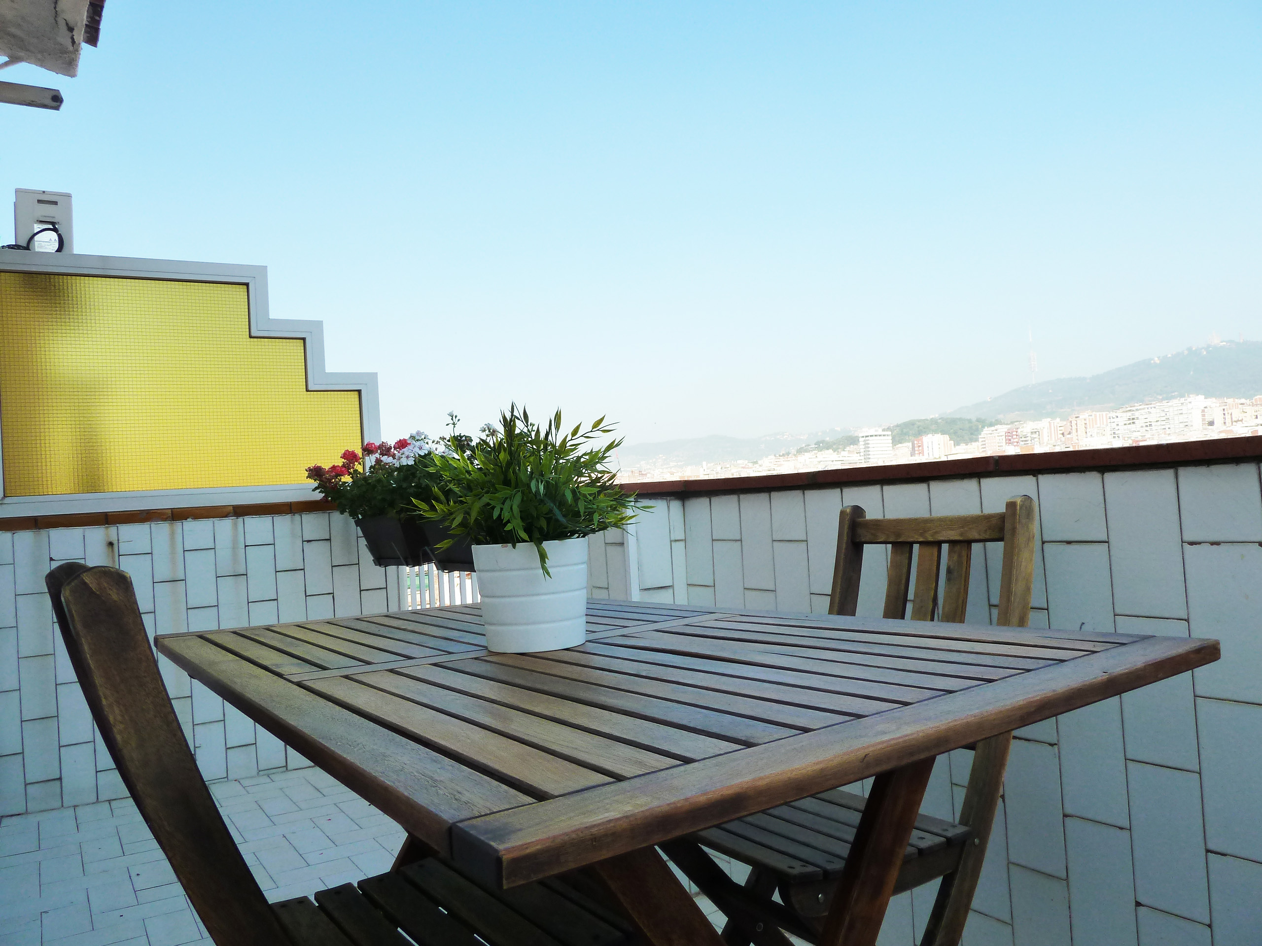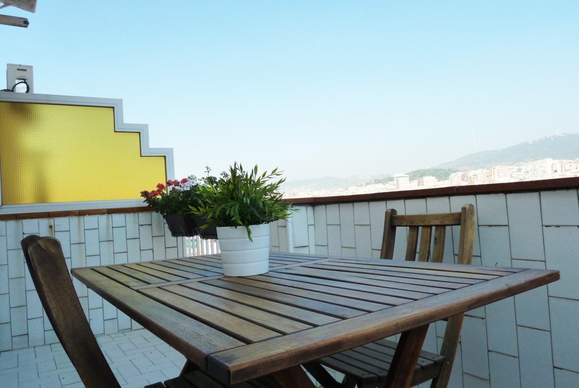 This penthouse offers a nice terrace with spectacular views of Barcelona, ​​with Tibidabo in the foreground! To be able to relax and eat outside. Two spacious double rooms: ideal for 2 couples and families!