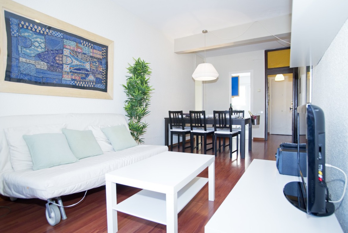 Relax in a spacious living room with a sofa bed, air conditioning, flat screen TV, listening to music or connecting to the Internet via Wi-Fi. The apartment is equipped with two bedrooms with a double bed, a bathroom with a bathtub and air conditioning in the living room. Fans in the rooms.