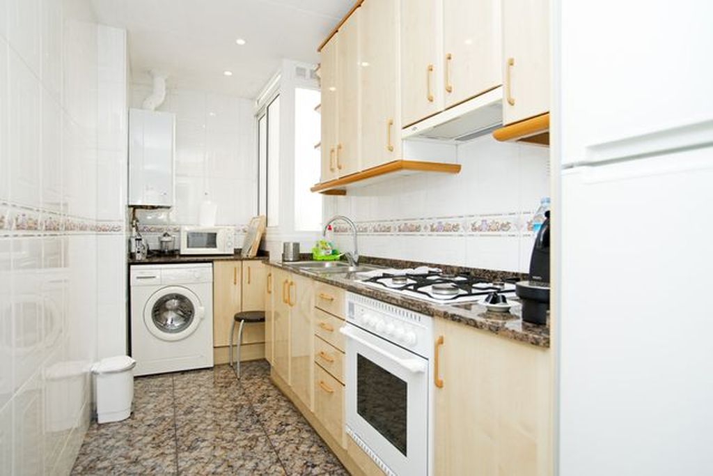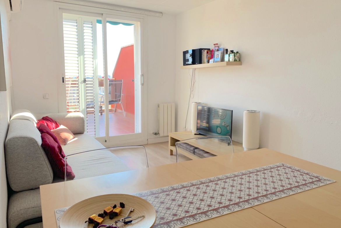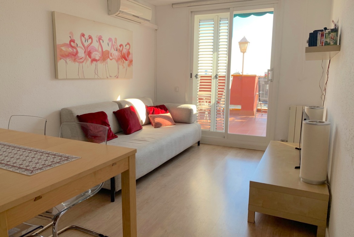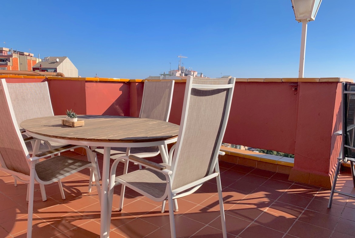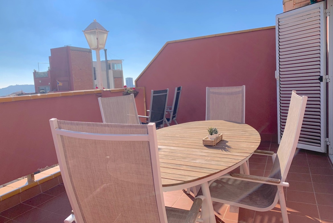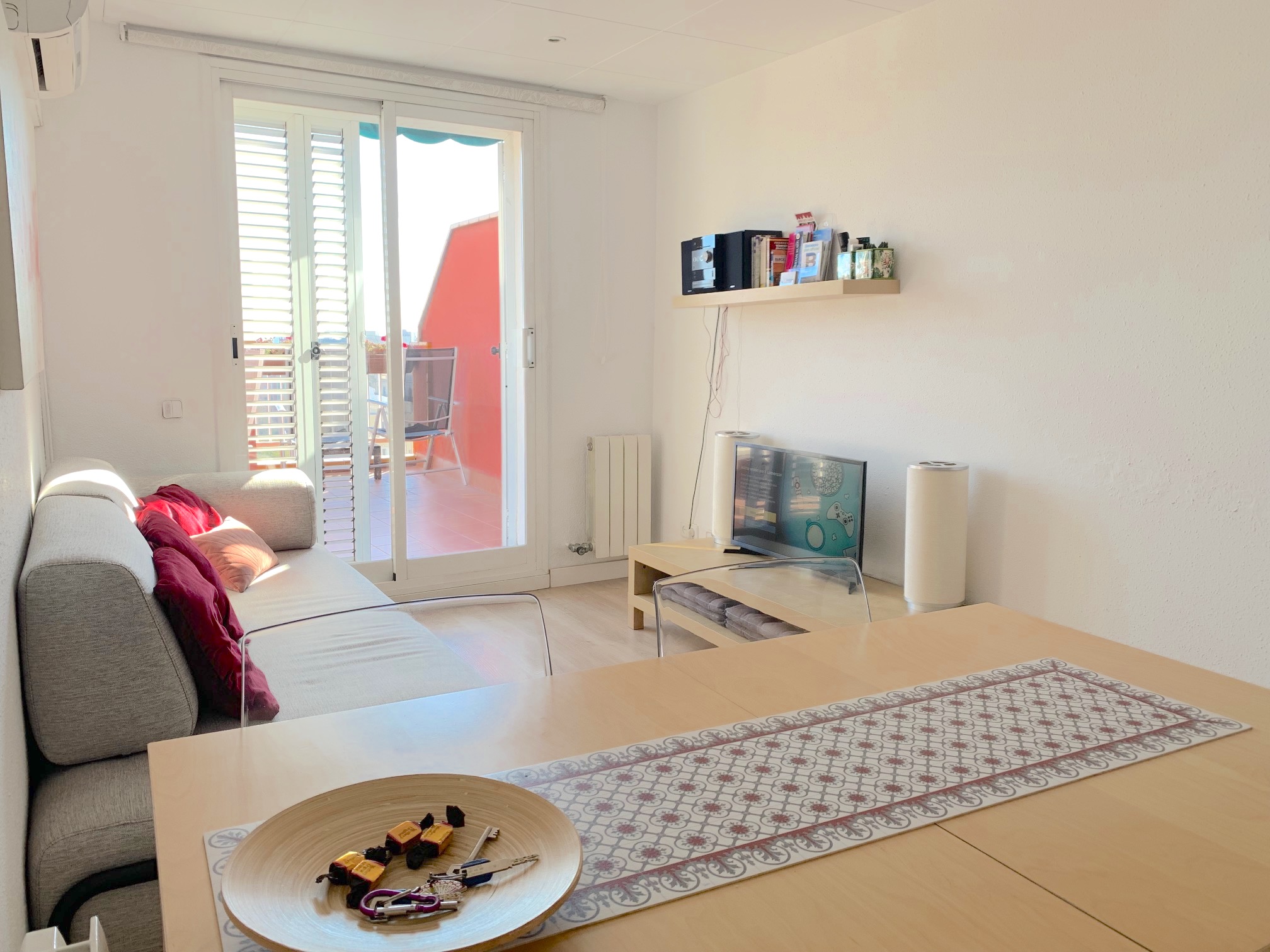 Modern-style penthouse with 2 bedrooms and a maximum of 4 people with a private, sunny terrace and spectacular views of Barcelona, all the way to the sea. Families welcome! Park for children in front… It has a double room with a double bed and another with 2 single beds.